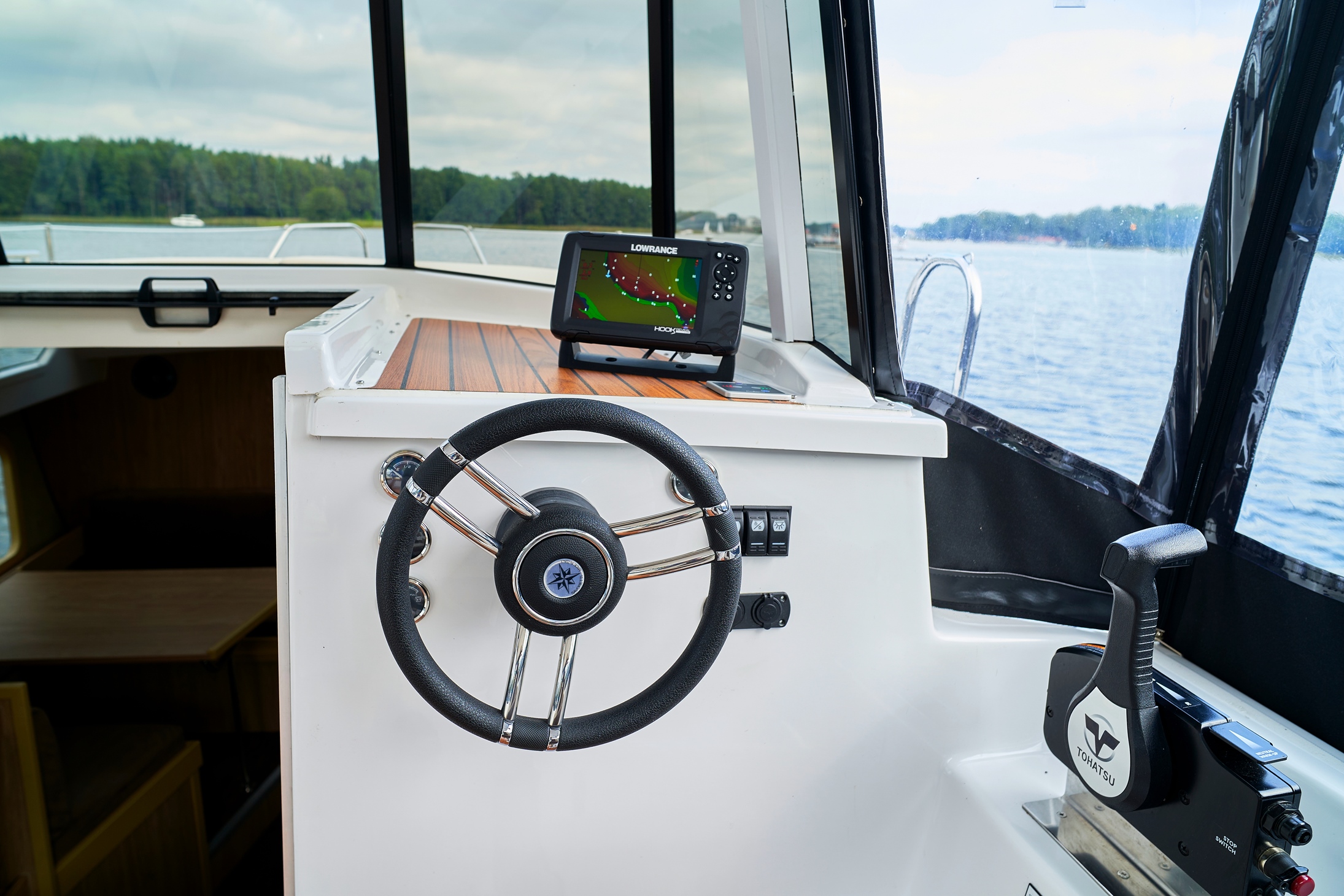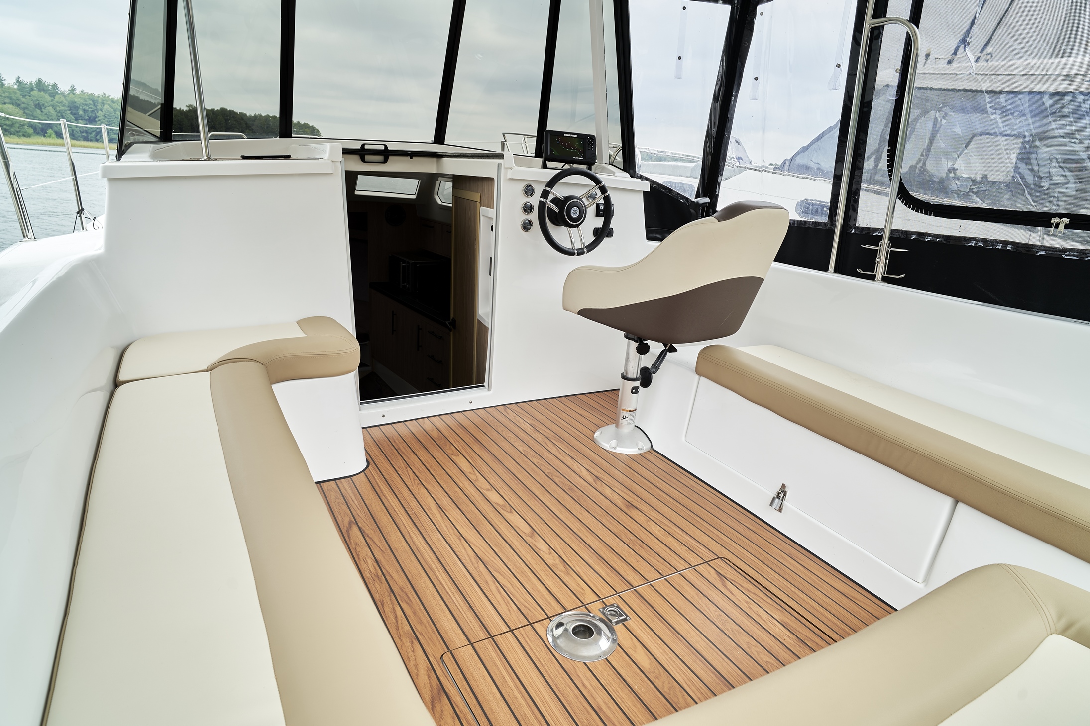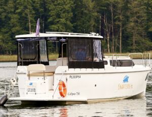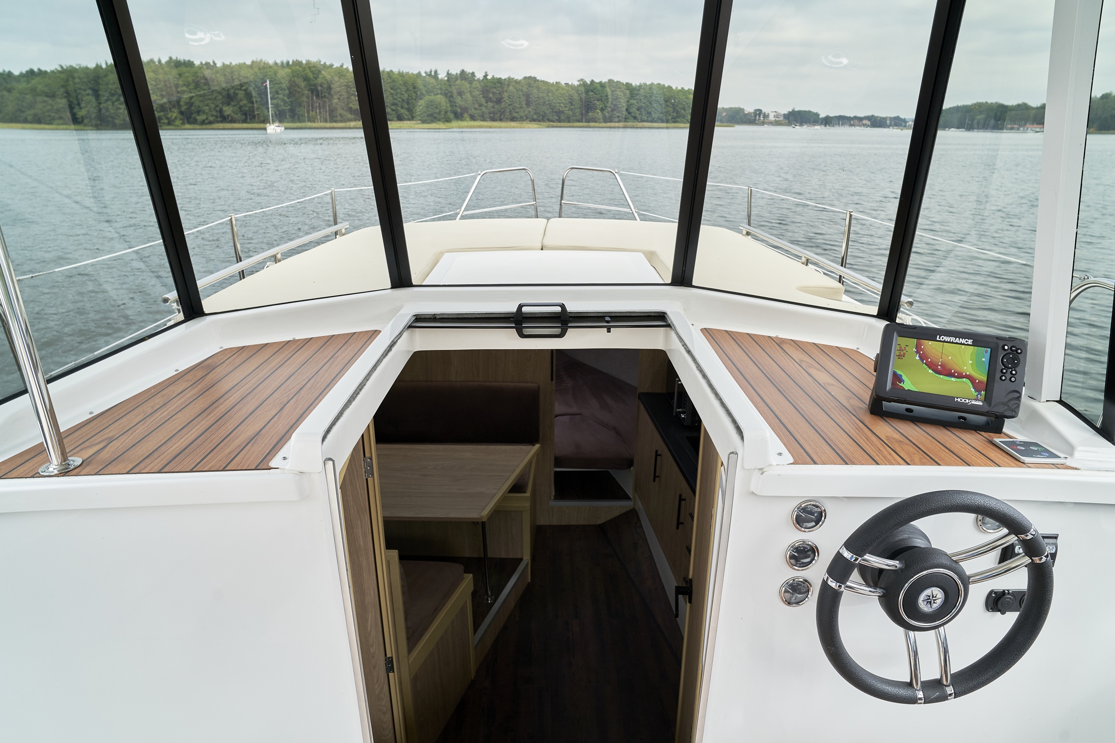 Calipso 750 wersja luxus to nowoczesna, bardzo wygodna spacerowa łódź motorowa na której komfortowo podczas rejsu może mieszkać sześć osób.